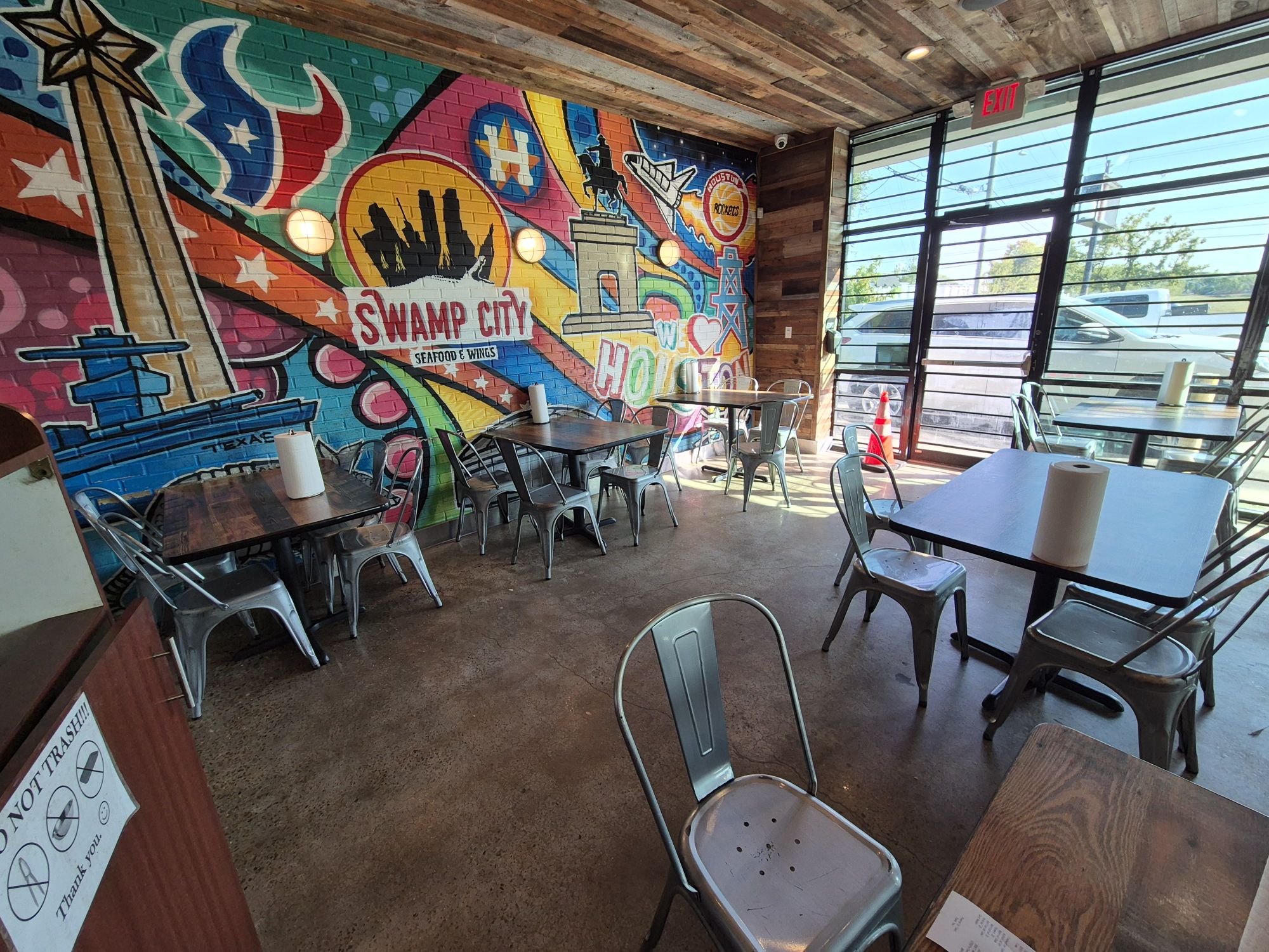 Én már nagyon megéheztem, mert a repcsin minden mikrokalóriát spórolni akartam a valódi célra. Az első helyszín egy tengeri ételek ÉS csirkéző étterem 😮, a filmekből ismert tipikus vidéki / külvárosi amerikai enteriőrrel.