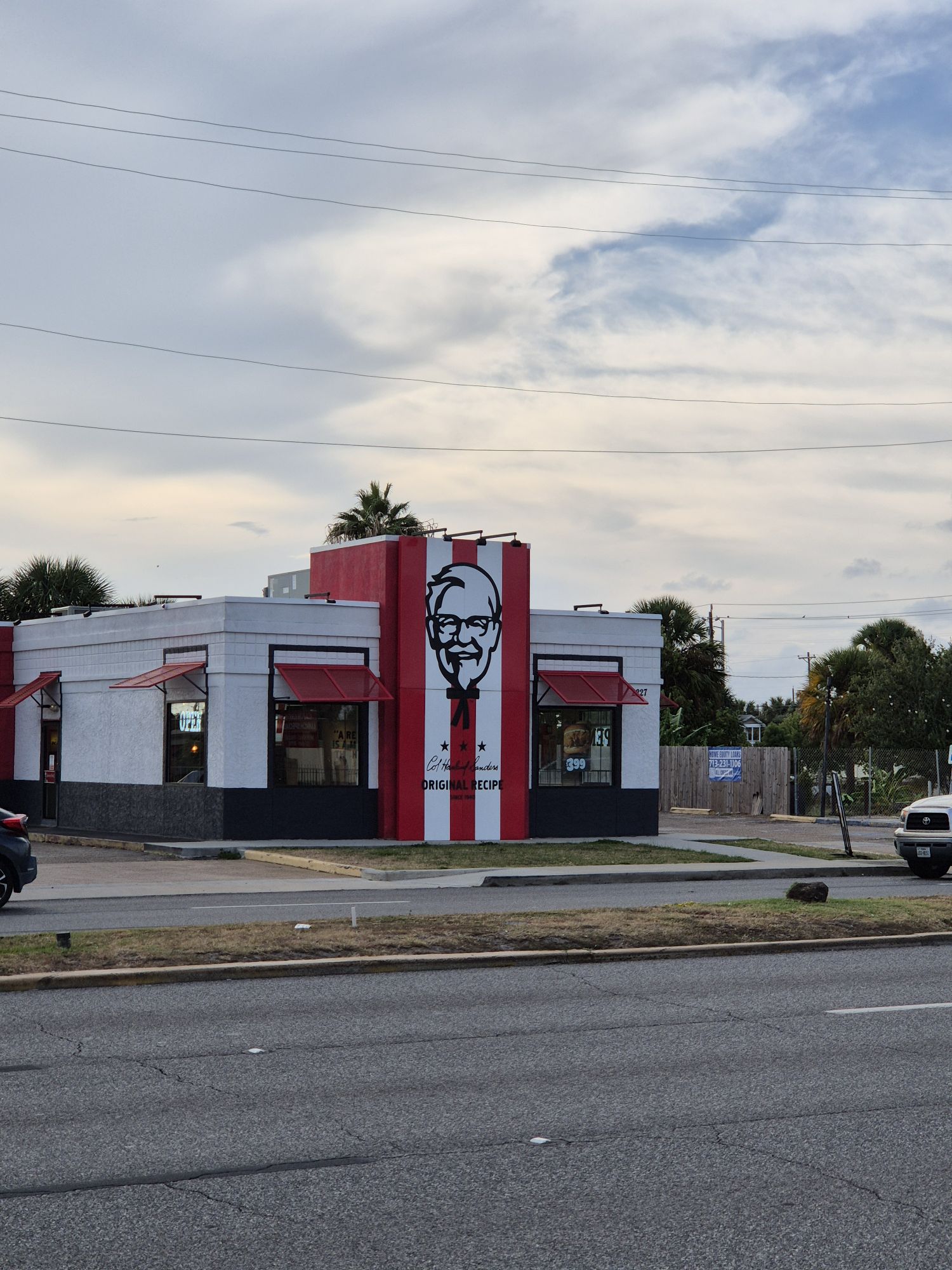 Az út túloldalán egy KFC hatalmas Sanders ezredessel: