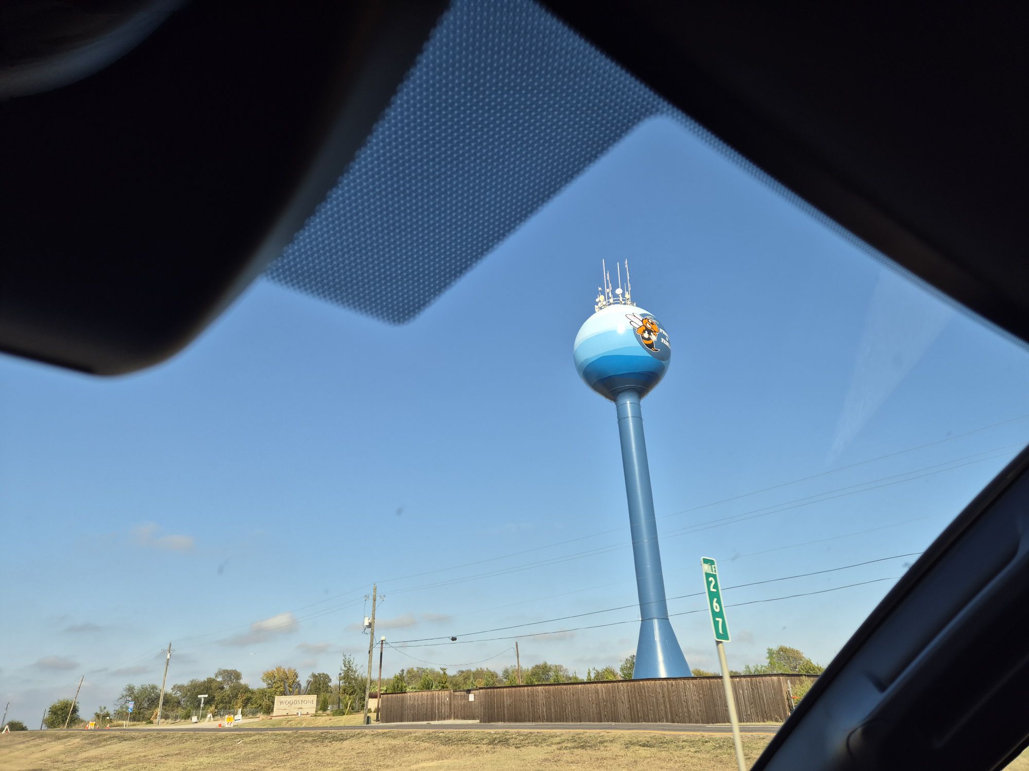 Aztán láttunk sok víztornyot, amire esetenként nem csak az adott település neve volt felírva, hanem annak kabalafigurája is felfestve, itt például egy méhecske: